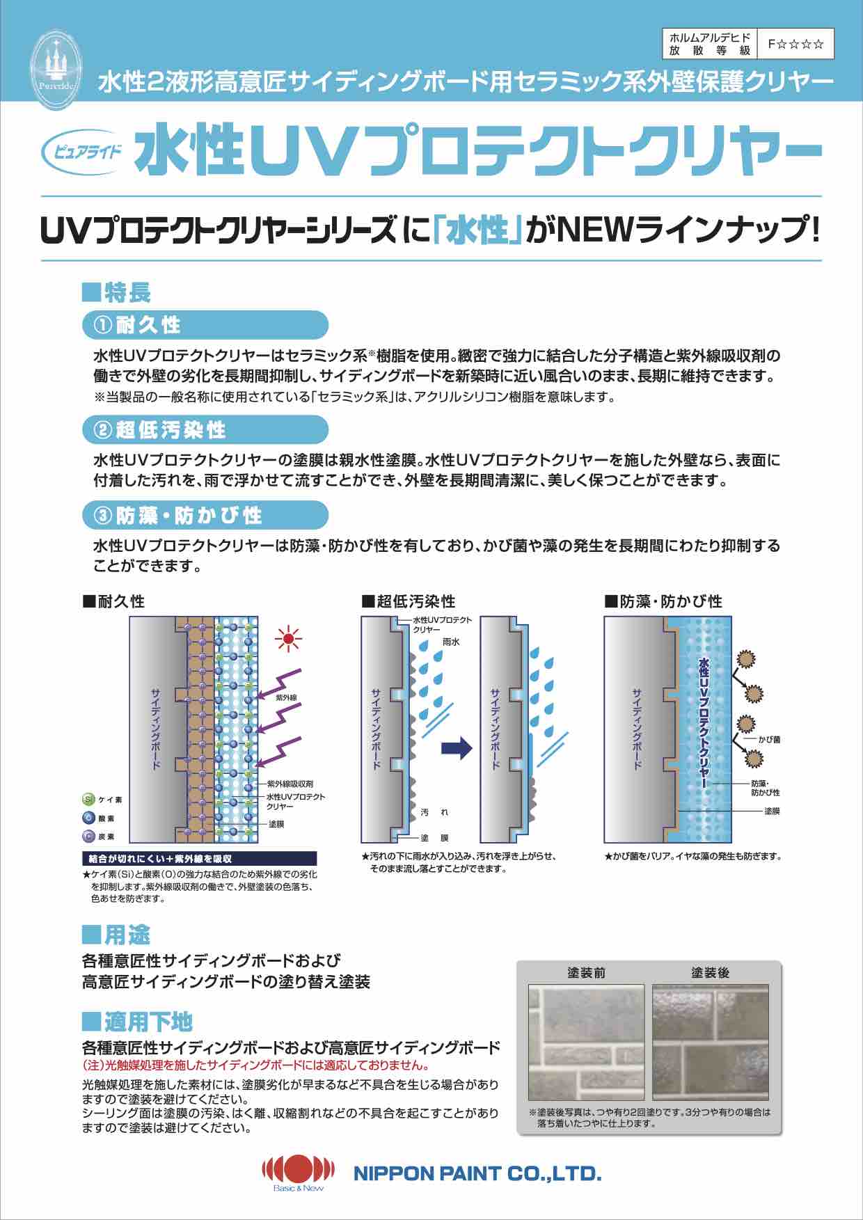 水性UVプロテクトクリヤーはセラミック系樹脂を使用(アクリルシリコン樹脂)