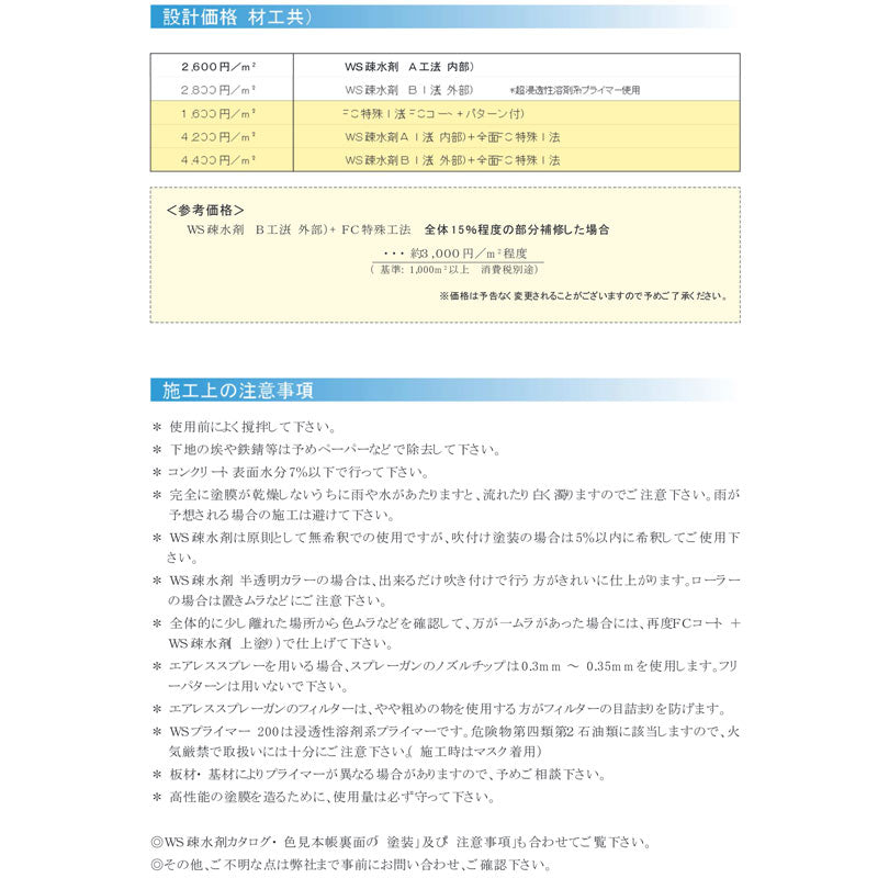 使用塗料/上塗2層目:WS疎水剤(半透明)