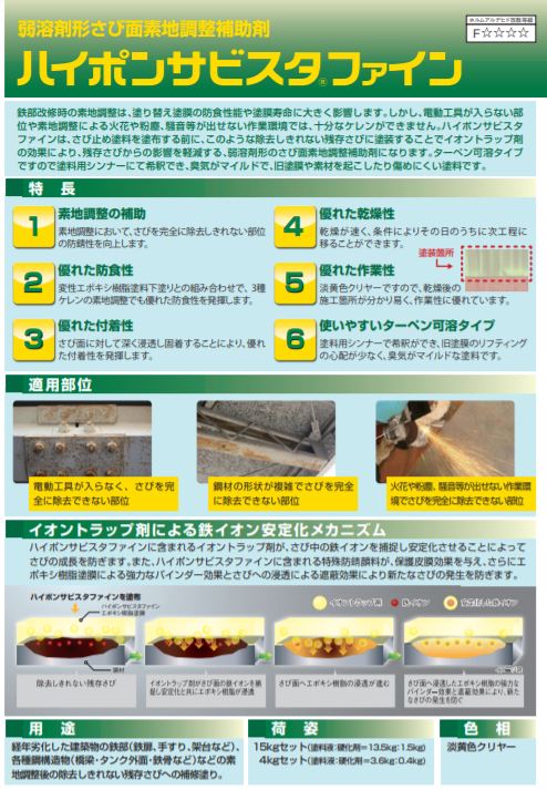 弱溶剤形で、取扱いやすいさび面素地調整補助剤。