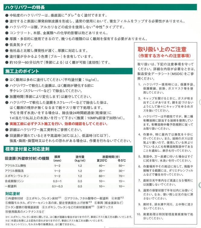 ・厚膜・多目的に使用できるので、幾つもの種類のはく離剤を保有する必要がありません。