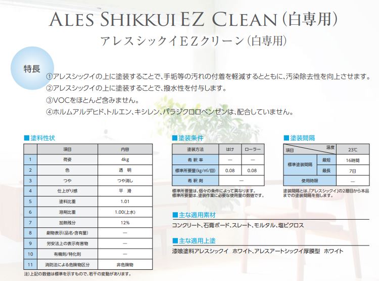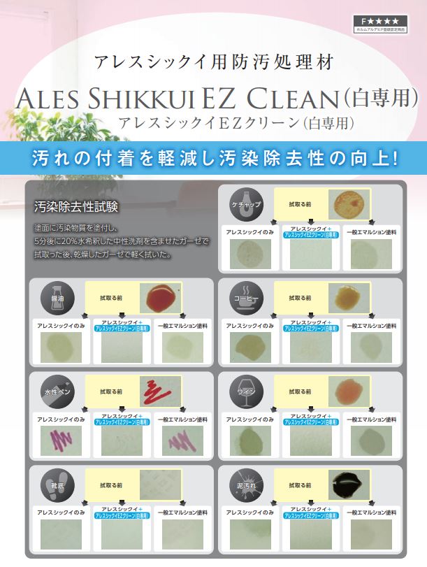 1)アレスシックイの上に塗装することで、手垢等の汚れの付着を軽減するとともに、汚染除去性を向上させます。