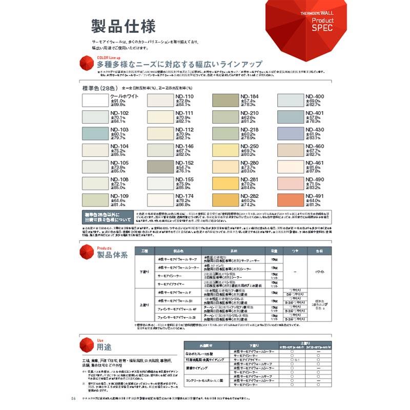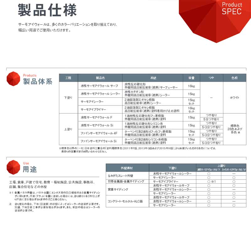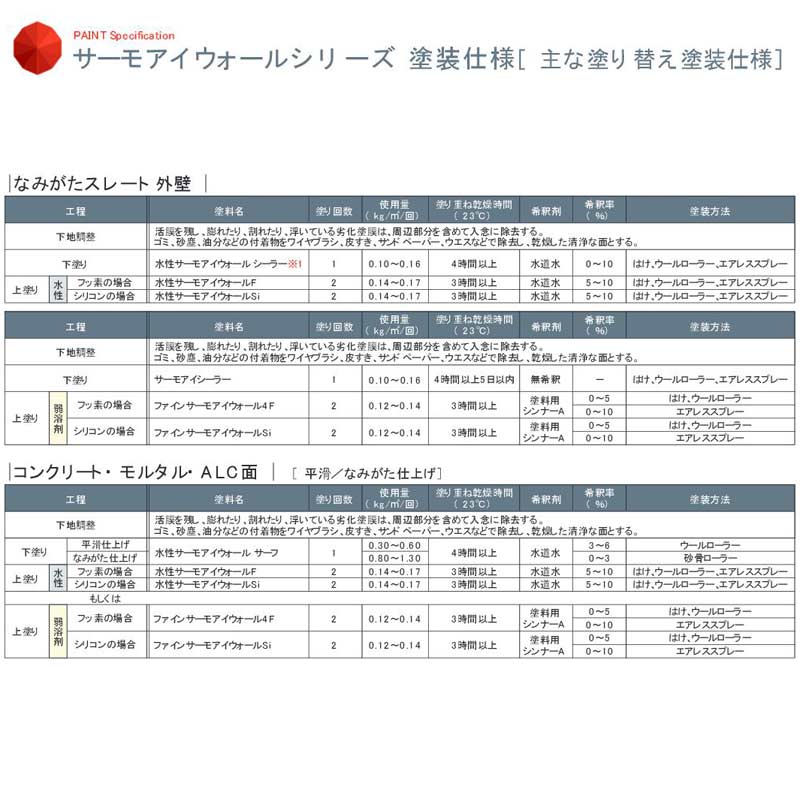 ※詳細(施工上・安全衛生上・取り扱い上の注意事項)につきましてはカタログ・塗装仕様などでご確認ください。