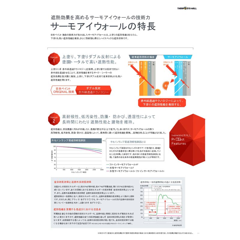 上塗り、下塗りのダブルで赤外線を反射し、塗膜トータルでの高い遮熱性能を実現。