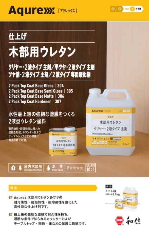 厳しい性能を要求される「カウンタートップ」 などにも使用することが出来ます。主剤と硬化剤の混合性が良く、 少量の使用でも容易に取り扱うことが出来ます。