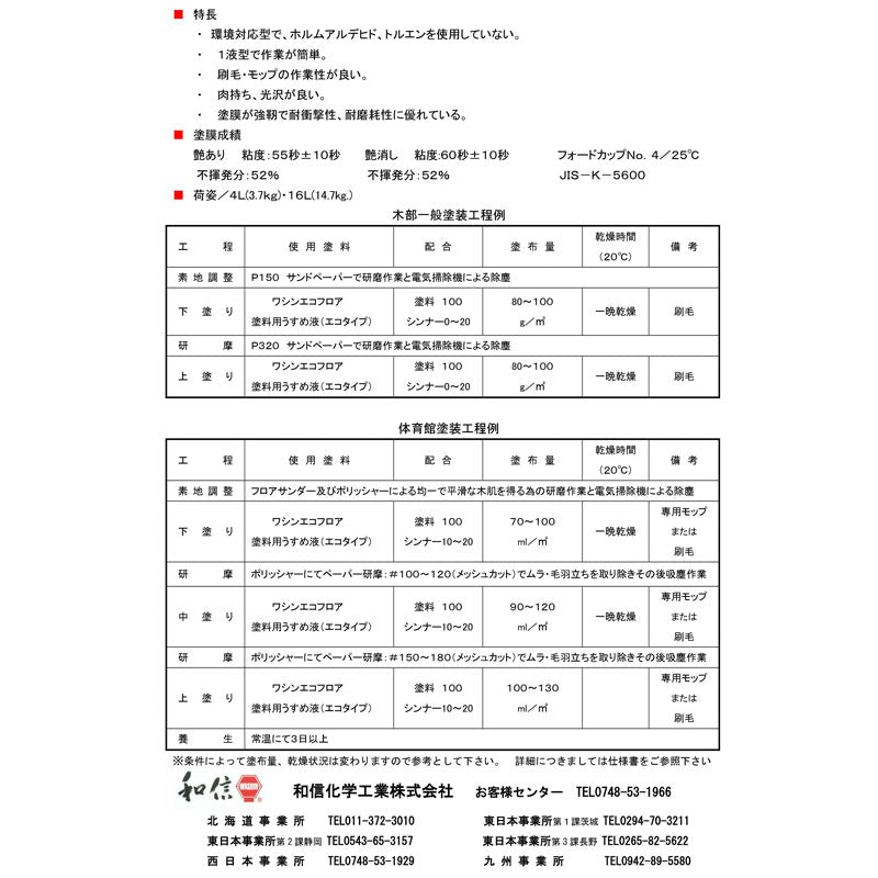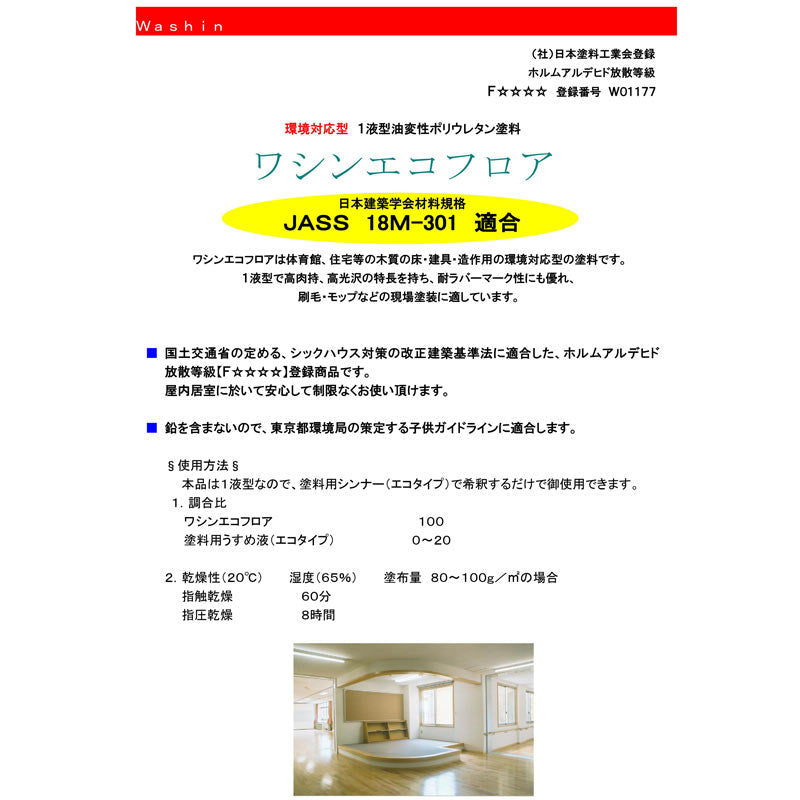 ワシンエコフロアは体育館、住宅等の木質の床・建具・造作用の環境対応型の塗料です。