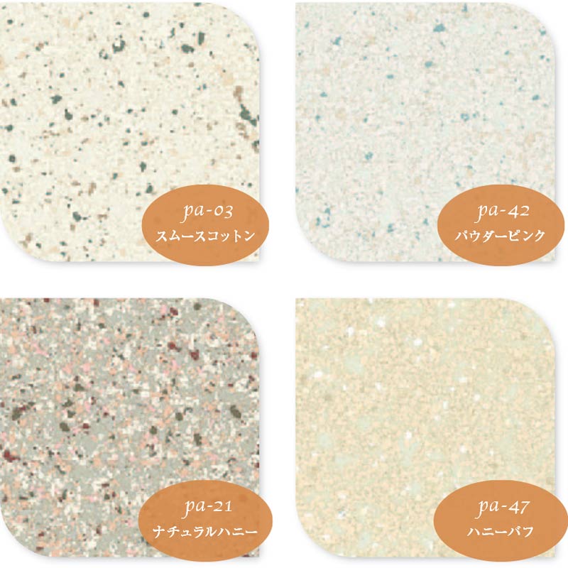 様々な複合色が自然本来の優しい彩りを創り出す多彩模様塗料。