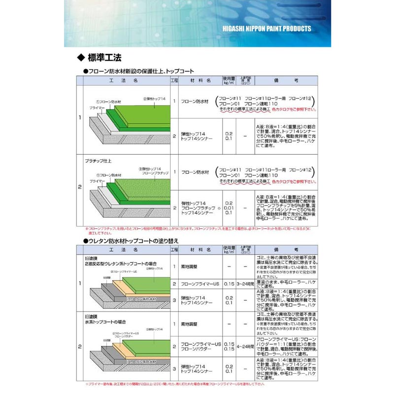 フローン防水材の機能を活かす保護仕上材