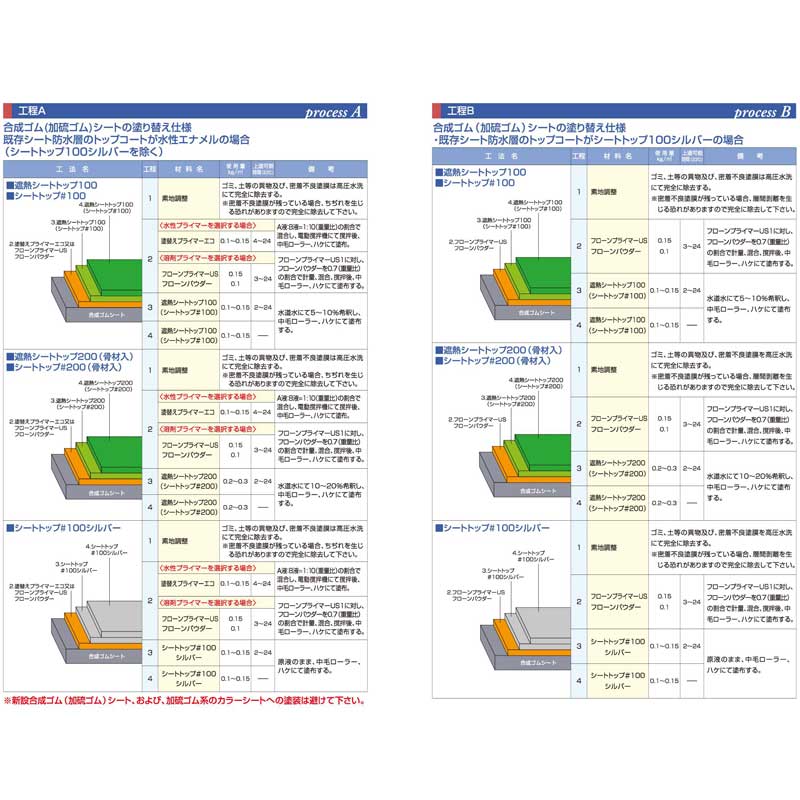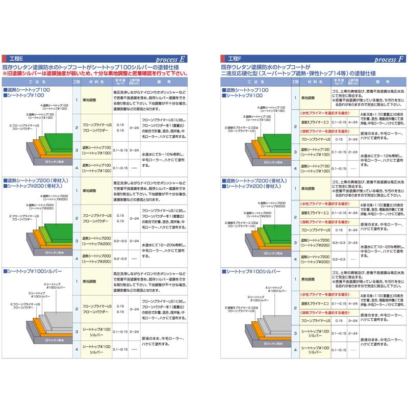 風雨にさらされる防水材をシートトップ塗膜が優れた耐水性、
