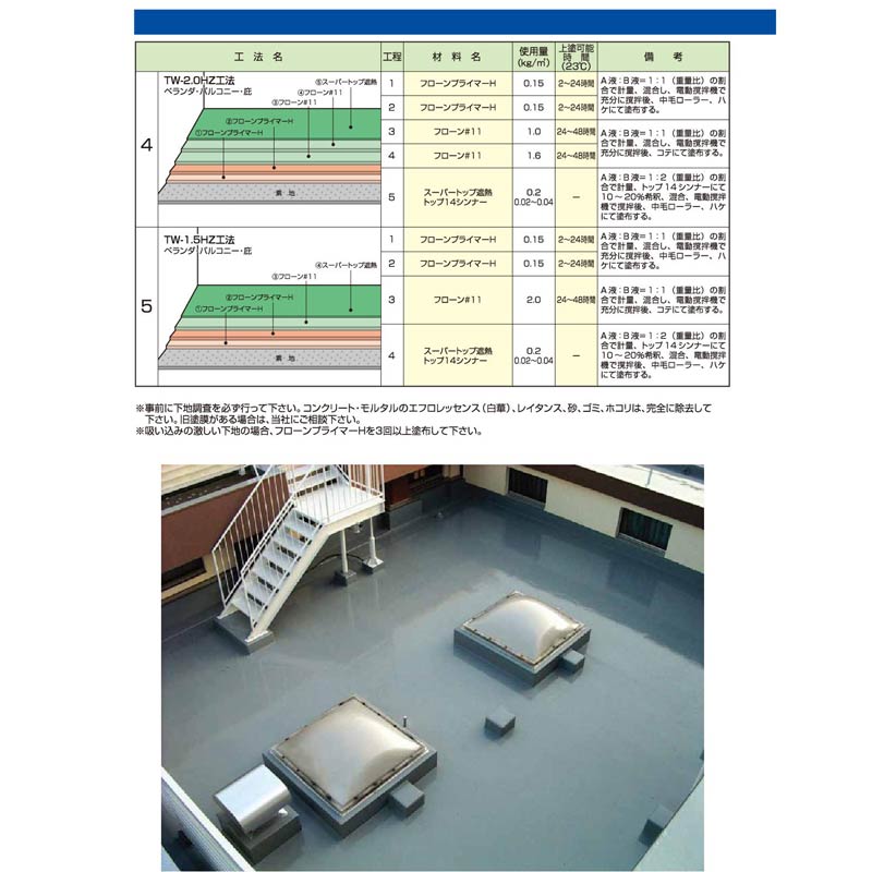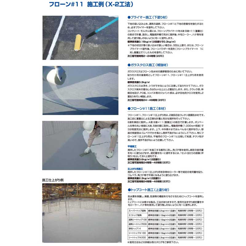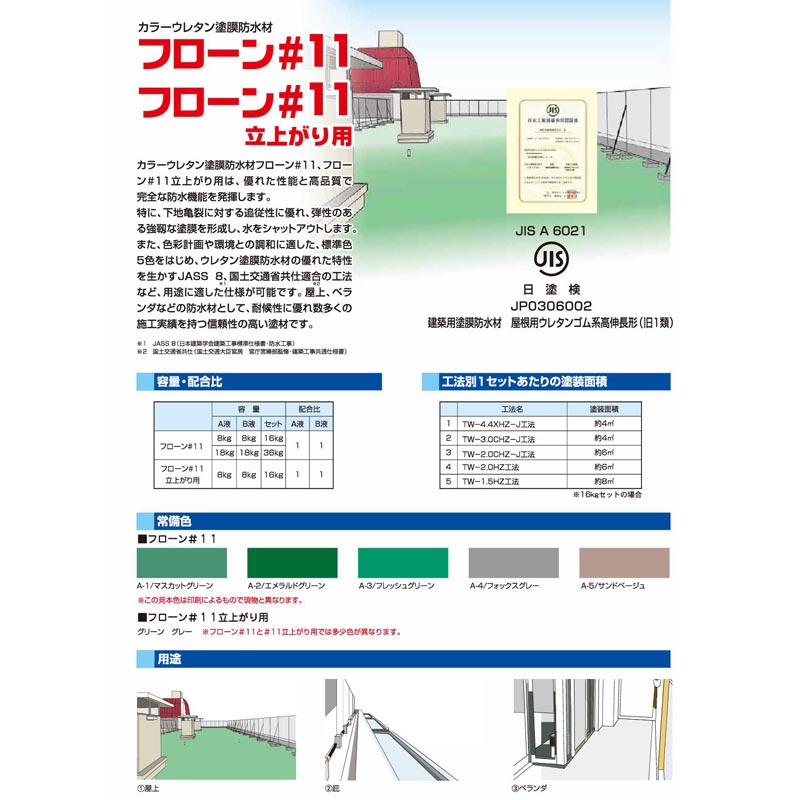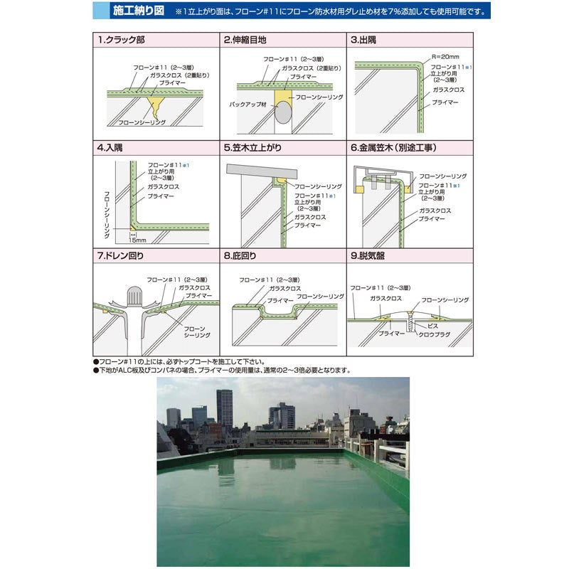 カラーウレタン塗膜防水材フローン#11は、 優れた性能と高品質で完全な防水機能を発揮します。