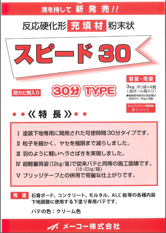 ・超 軽 量 荷 姿(12kg/ 箱 )で従来パテと同等の施工面積です。