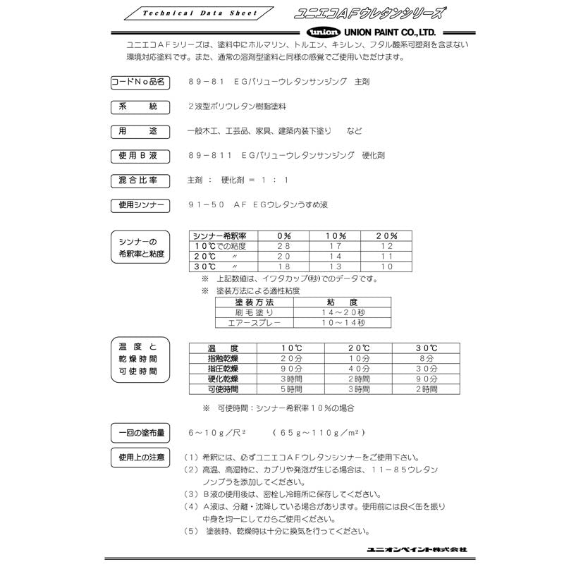 (1)希釈には、必ず91〜50AF EGウレタンうすめ液をご使用下さい。