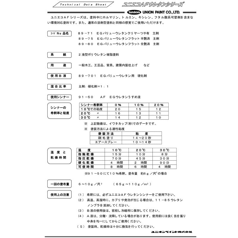 (1)希釈には、91-50AF EGウレタンうすめ液をご使用下さいをご使用下さい。