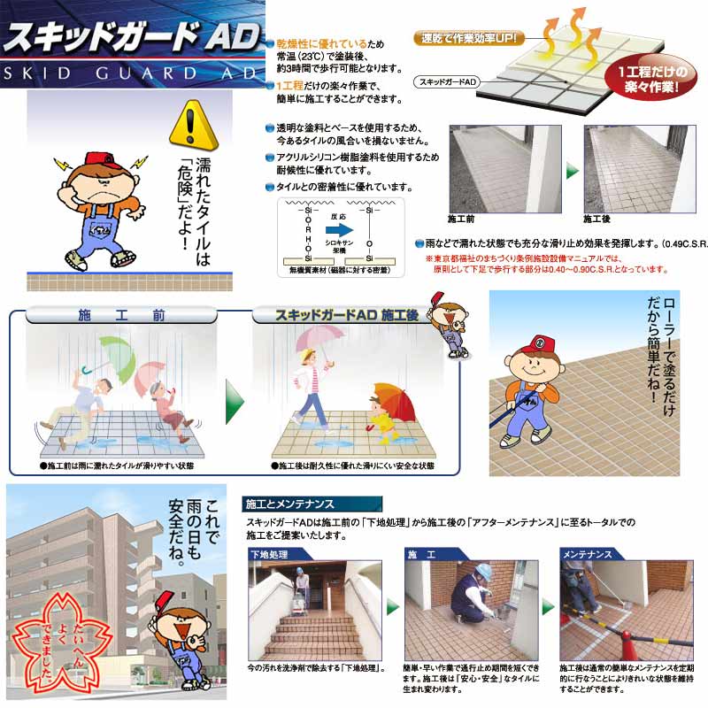 ●乾燥性に優れているため常温(23℃)で塗装後、約3時間で歩行可能となります。