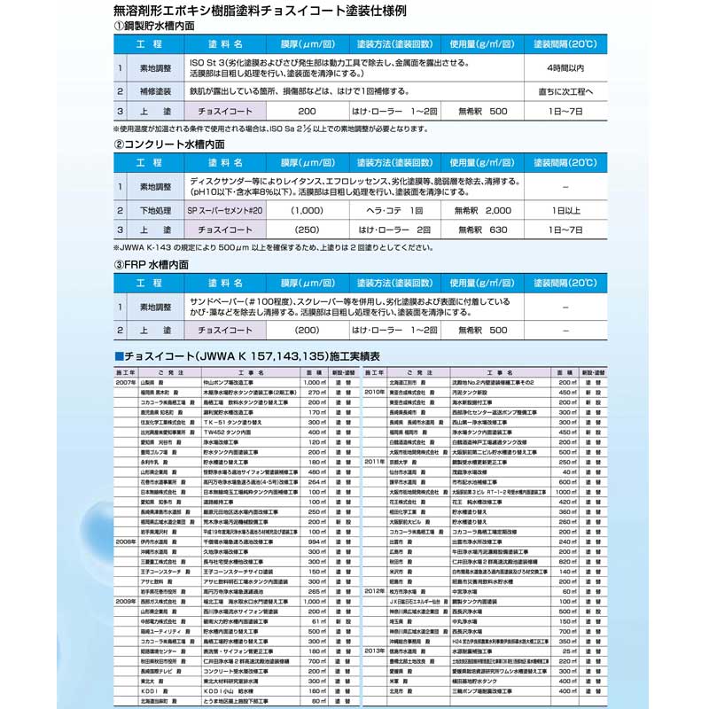 4.鋼製、FRP製、コンクリート製の各種水槽の内面塗装に最適です。