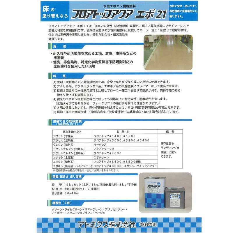 フロアトップアクア エポ21は、低臭で安全性(非危険物)に優れ、幅広い既存塗膜にプライマーレスで塗替え可能な床用塗料です。