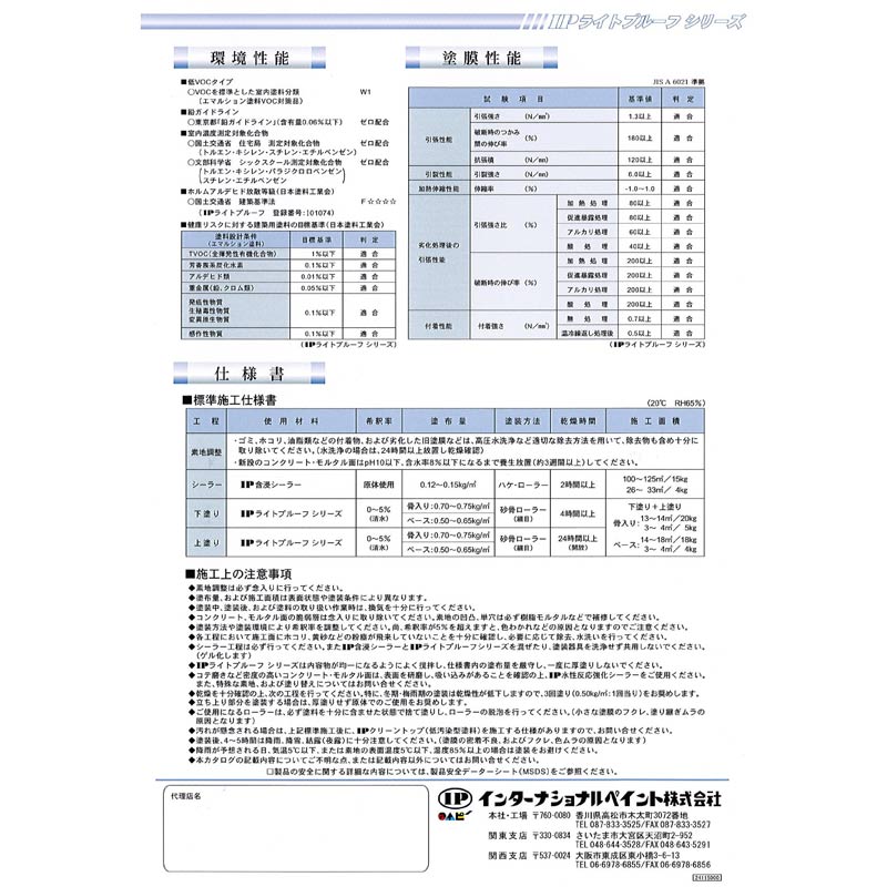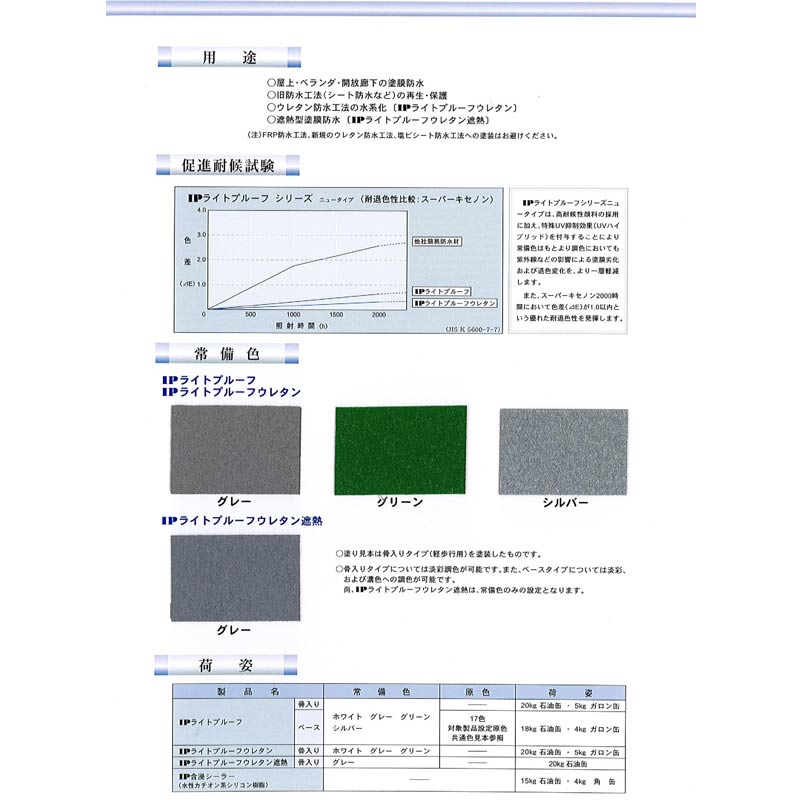 『IPライトプルーフ』は、施工性、安全性、経済性に優れた、厚膜(2回塗り:約1mm)簡易防水材です。
