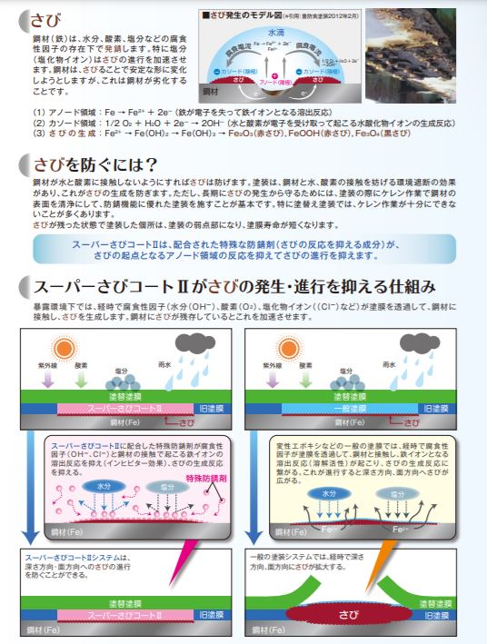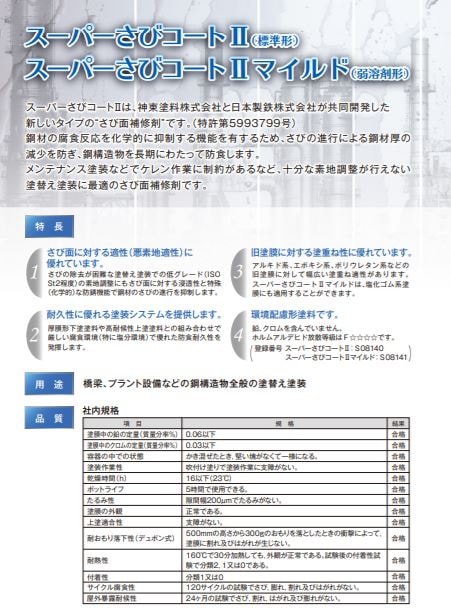 ケレンが困難な塗替えでさび面に対する浸透性と化学的な防錆機能で鋼材のさびの進行を抑制します。