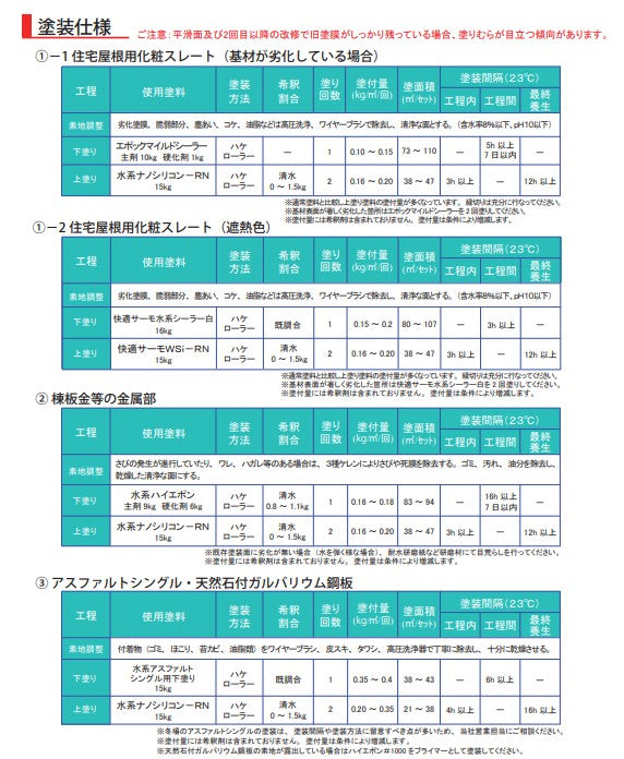 「快適サーモWSi-RN」は高性能な樹脂を使用し、劣化した住宅屋根用化粧スレートを新築時の質感に再生させるためにも開発された製品です。住宅屋根用化粧スレートの再生だけではなく、アスファルをシングルや天然石付ガルバリウム剛板の塗り替え適しています。