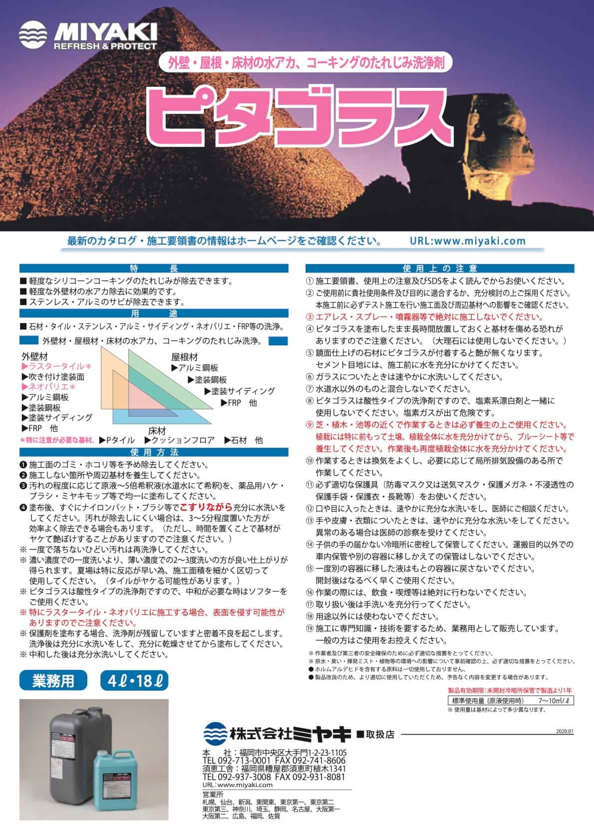 外壁・屋根・床材の水アカ・コーキングのたれじみ洗浄剤 ピタゴラス