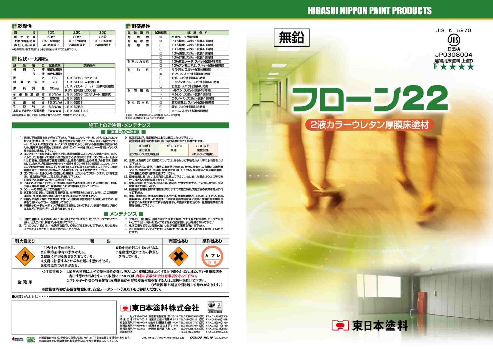耐汚染性、耐摩耗性、適度な弾性が求められる床にフローン22は2液ウレタン塗膜床塗材です。