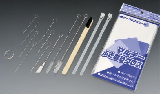 新開発素材製のふき取りクロスや、各種洗浄ブラシ・ニードルピンのほか、スプレーガン洗浄機を使用する場合に便利なトリガーロックタイがセットになっています。
